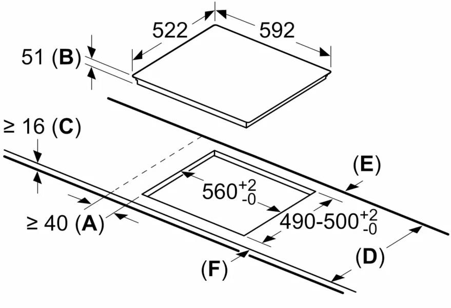 - Ancho del hueco de instalación: 56 cm